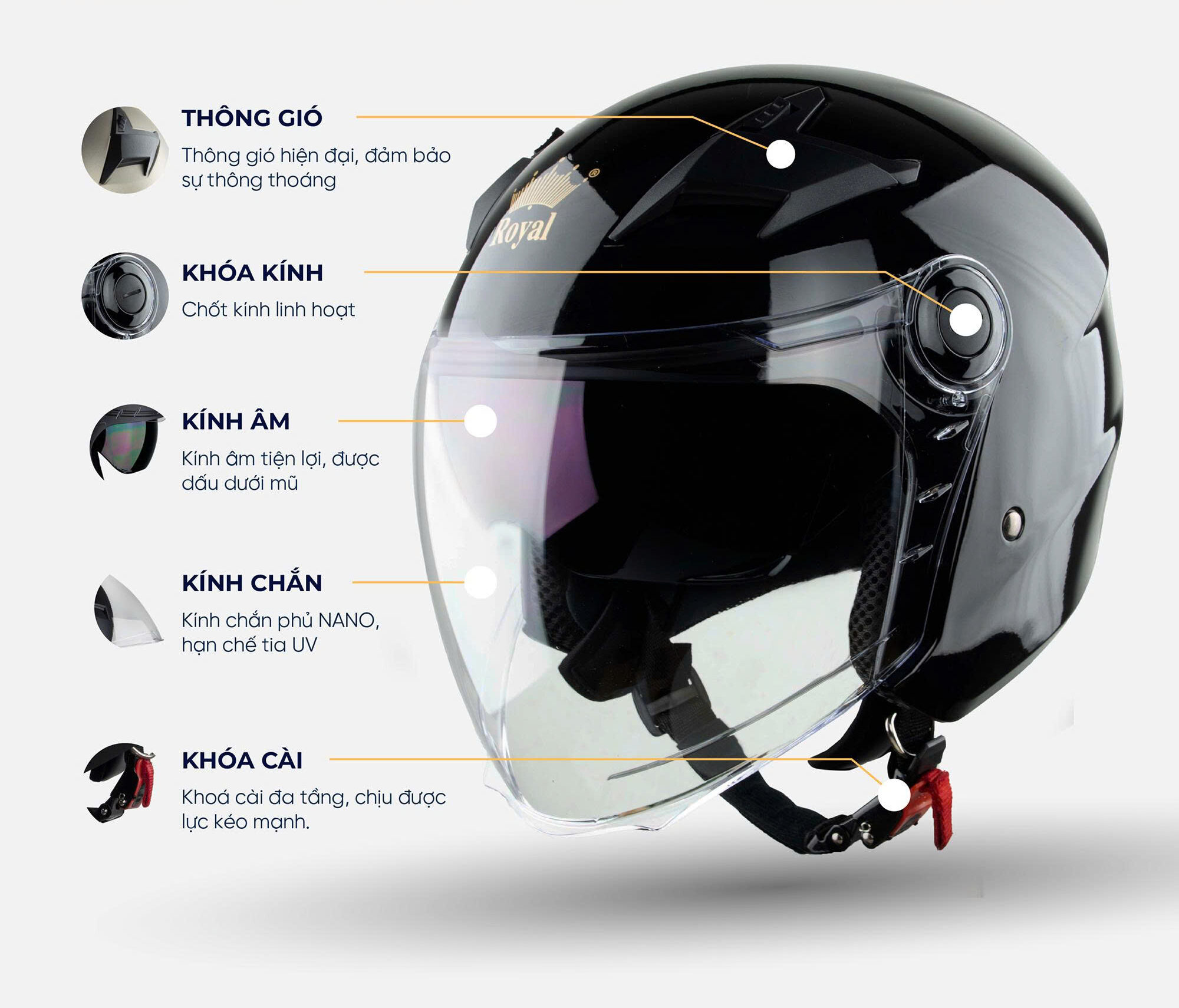 Mũ bảo hiểm 3/4 Royal M268 2 kính siêu phẩm mới nhất của Royal